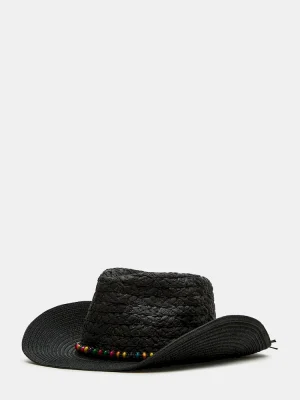 Beaded Trim Western Hat Black