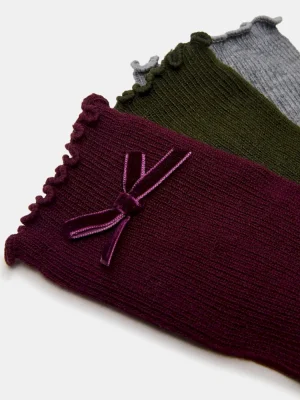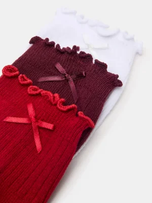 3 Pack Melody Lettuce Edge Bow Socks Red Multi