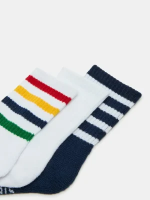 3 Pack Striped Crew Socks White Multi