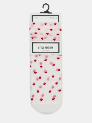 Add some love to your wardrobe with these sheer white socks featuring a playful heart design that adds a touch of sweetness to any outfit. With a two-pack, you’ll have double the festive looks for any occasion.
