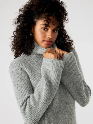 The ABBIE sweater dress is expertly crafted with a turtleneck and flare sleeves and offers a relaxed yet stylish fit. The soft brushed material provides warmth and comfort, making it the perfect mini dress for cooler weather. Elevate your wardrobe with this versatile and chic pullover dress.