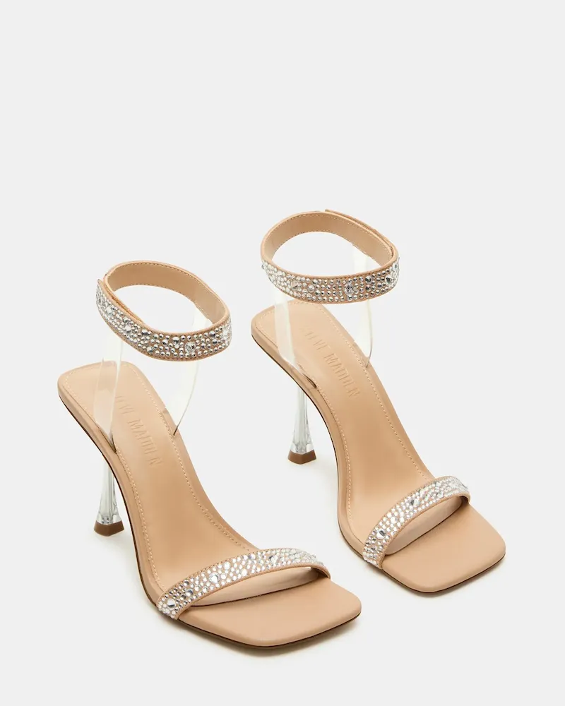 The ADENA is a stylish and secure square-toe heel with a secure ankle strap for added stability. Its rhinestone embellishments add a touch of glamour to any outfit. Perfect for any occasion, this shoe offers both style and comfort.