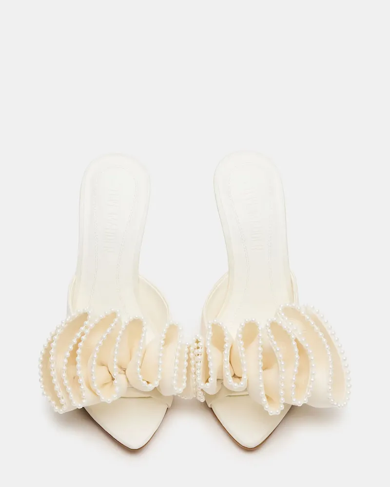 Elevate your style with these AFFINITY heels. Featuring a pointed-toe design and a sleek mule silhouette, these ruffle heels are both stylish and timeless. The stiletto heel adds a touch of sophistication, making them the perfect choice for any occasion. Step into these heels and experience comfort, confidence, and elegance all in one.
