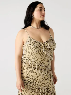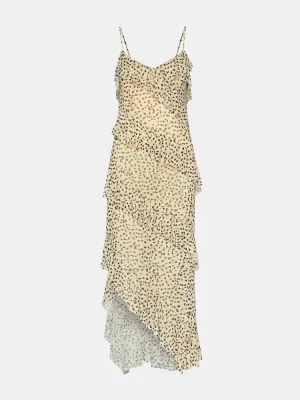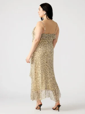 This AIDA dress provides a flowy ruffle design and v-neckline, perfect for a comfortable and stylish look. Its maxi length and sleeveless design offer versatility and breathability. Crafted from high-quality materials, this dress is a must-have for any fashion-forward individual looking for a statement piece in their wardrobe.