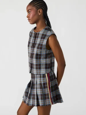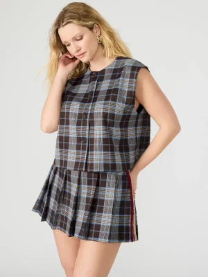 The ALESSA top features a classic button-up design crafted with precision for a polished look. Its coordinating plaid pattern makes it an ideal piece for creating a cohesive matching set, blending timeless style with versatile wearability. Perfect for layering or wearing alone, this top offers both comfort and sophistication for a refined wardrobe staple.