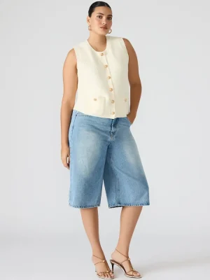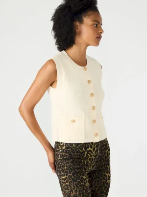Elevate your layering game with the ALIYA sweater vest top This button-up, sleeveless design offers a refined silhouette perfect for transitional weather. Crafted for versatility, it pairs seamlessly with shirts or is worn alone for a polished, expert look.