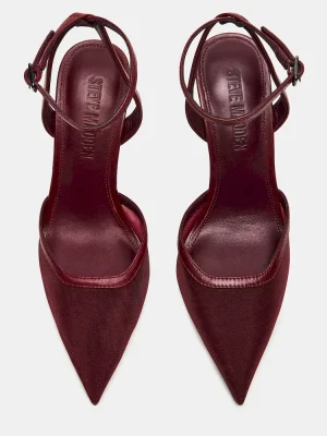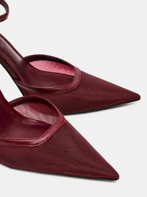 SHARP + ELEGANT + MODERNALLIANCE MESH BURGUNDY is an open-back pump with a pointed-toe and a taller version of the classic kitten heel adding extra height to the look.