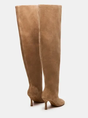 Step into refined elegance with the ALLISON TAUPE SUEDE over-the-knee heeled boot. Crafted for a sleek silhouette, its material extends gracefully above the knee, offering both style and coverage. The slender heel adds height while maintaining comfort, perfect for elevating any outfit from day to night with confidence and sophistication.