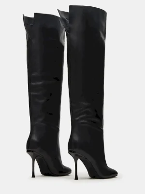 Sleek and stylish, the ALLURING over-the-knee boot boasts a square-toe and stiletto heel for a sophisticated and chic look. Made with high-quality materials, these boots exude confidence and elevate any outfit. Walk tall and confident in these must-have heels.