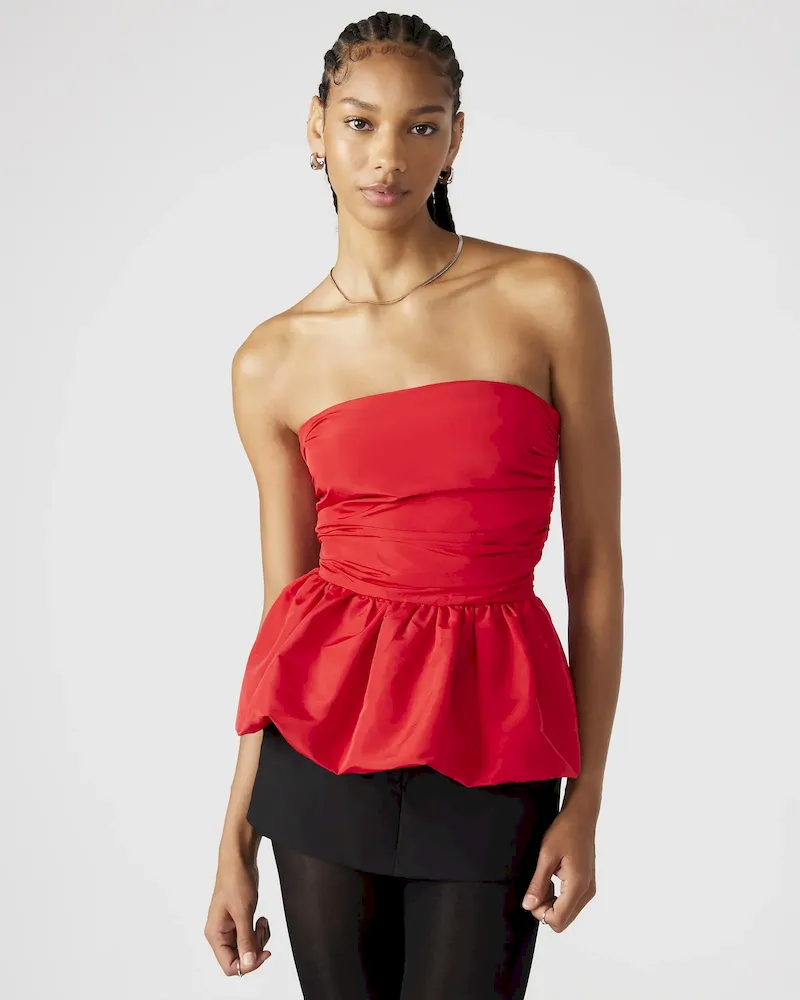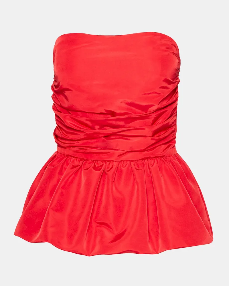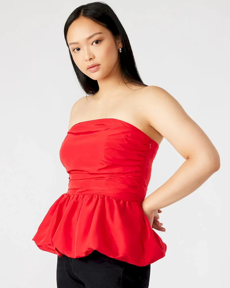 Elevate your style with our AMARI top. This top features a strapless design and bubble-hem taffeta design, it is both chic and comfortable. Perfect for any occasion, it will add a touch of sophistication to your wardrobe.