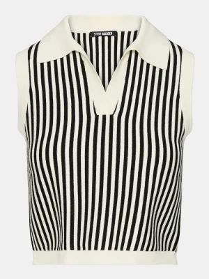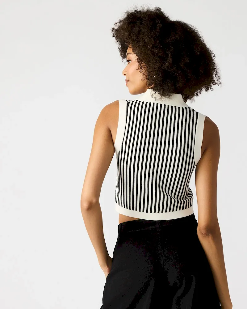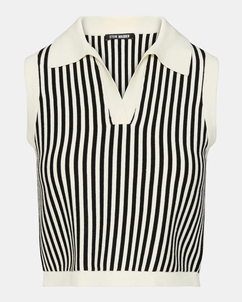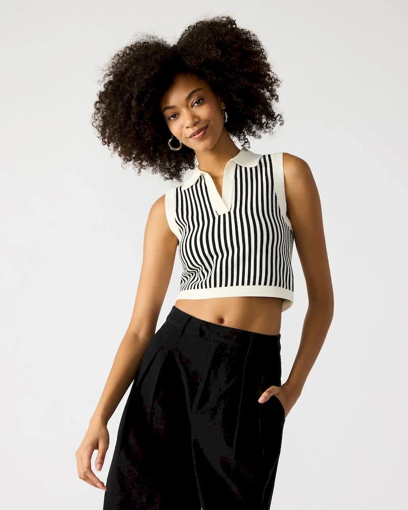 Upgrade your wardrobe with the AMERY SWEATER top. This stylish sweater vest features a collared neckline and a trendy stripe pattern, perfect for adding a touch of sophistication to any outfit. Made with a comfortable knit material, stay cozy and fashionable all day long.
