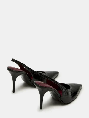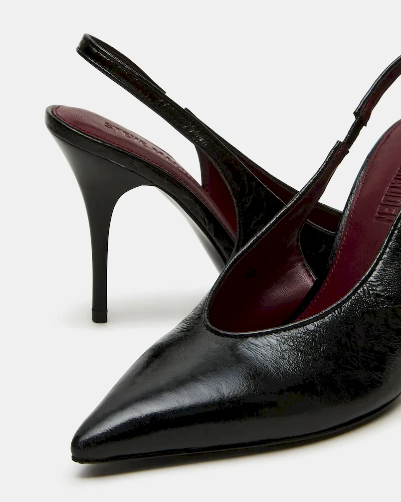 Introducing the ANDROMEDA pump. This elegant heel features a pointed-toe design and stiletto heel for a sophisticated look. The slingback strap provides a secure fit while the unique design adds a touch of luxury. Perfect for any formal occasion, these heels will elevate your outfit to the next level.