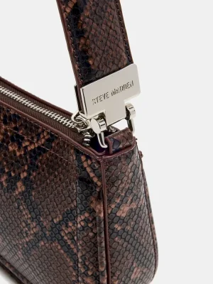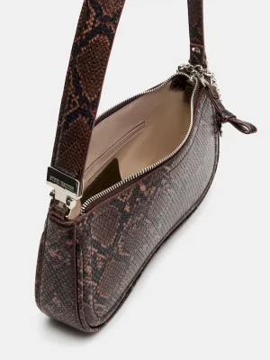 The ANGEL BAG BROWN SNAKE features a sculpted top-zipper design for secure and stylish access. Inside, an interior pouch on the back wall provides organized storage for essentials. A distinctive logo chain bag charm adds a refined, expert touch that complements the sleek silhouette, making this shoulder bag both functional and sophisticated for everyday wear.
