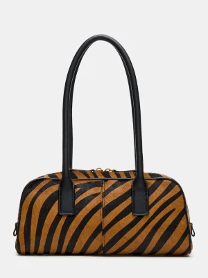 The ANISE BAG TIGER is a sleek and structured elongated shoulder bag that captures the minimalist trend. It features an interior pouch on the front wall for added organization and exaggerated tubular shoulder straps for a chic touch. Elevate your accessory game with this versatile and stylish bag.