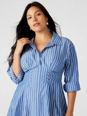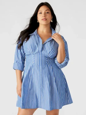 - Corset detail button-up mini shirt dress