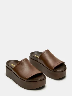 The ARWEN slide sandal features a platform flatform design and rounded toe for a trendy yet comfortable look. With a chunky footbed, this sandal offers both style and support. Elevate any outfit with these versatile and chic sandals.