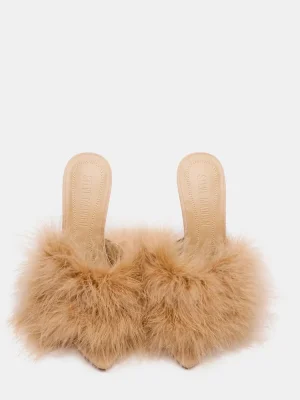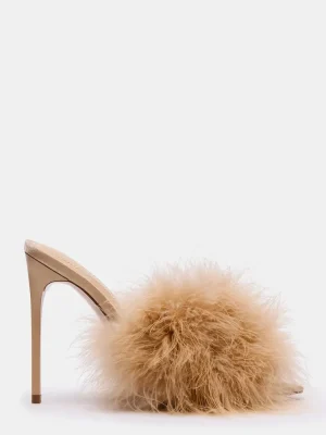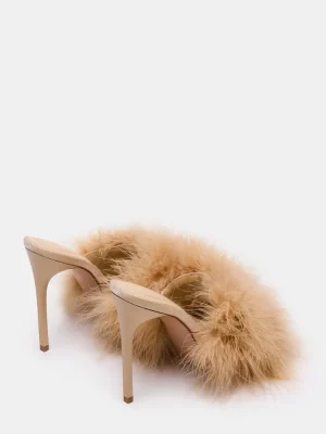 Elevate your style with the ASHBEY mule, featuring a sleek pointed-toe silhouette and a slender stiletto heel for a refined profile. Adorned with delicate feathers, this design adds a touch of sophisticated flair, perfect for making a statement at any event. The slip-on mule construction ensures effortless wear while maintaining an elegant, fashion-forward look.