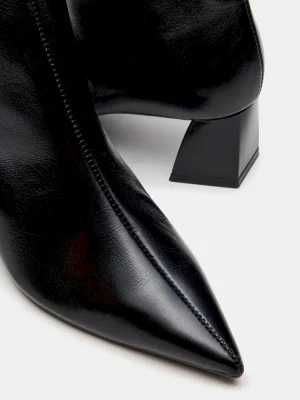 Elevate your footwear collection with the ASHLI bootie, featuring a sleek pointed-toe and a sturdy block heel for balanced support. Crafted as an ankle boot, it offers a refined silhouette that pairs effortlessly with both casual and dressier outfits. The rich materials add a sophisticated touch, making it a versatile choice for expert styling.
