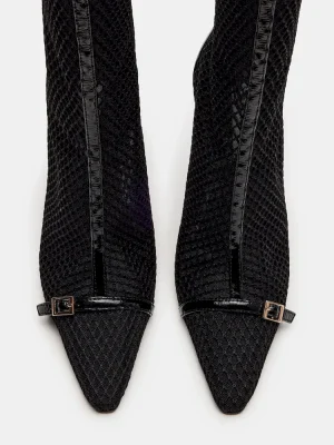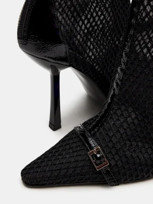 Add a touch of sophistication to your wardrobe with the ASHLIN stiletto heel ankle boot. Featuring a mesh bootie and pointed toe, this sleek design is perfect for elevating any outfit. Step out in style and confidence with this versatile and trendy footwear.