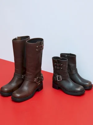 - Square toe block heel engineer boot