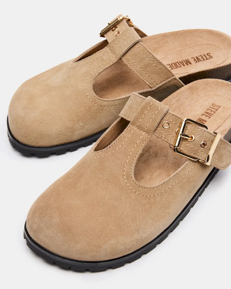 The ATTICUS mule clog features a buckle detail, adding a touch of elegance to this stylish shoe. The buckle provides a secure fit, ensuring comfort and confidence with every step. Crafted from quality materials, these flats are a must-have addition to any wardrobe.