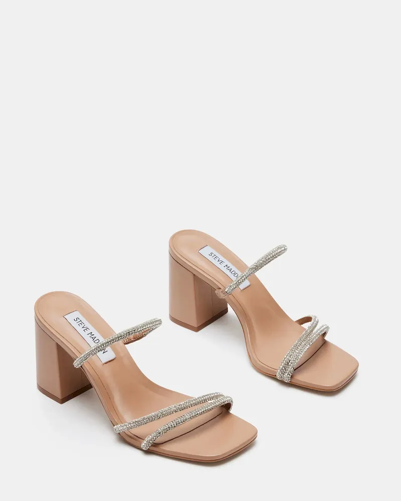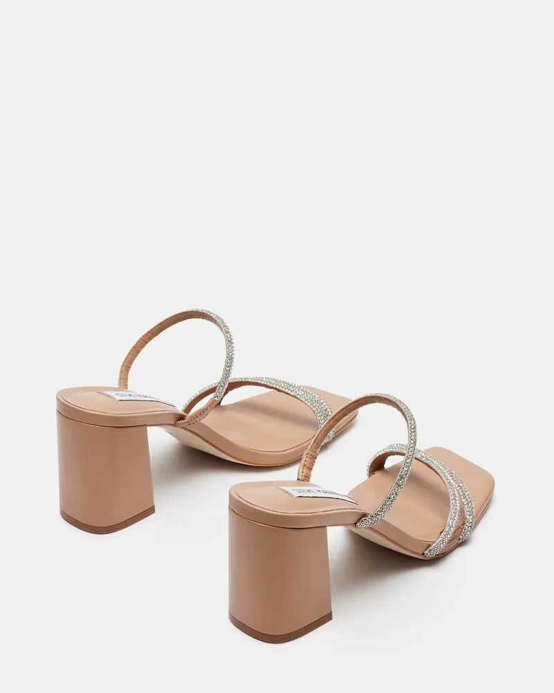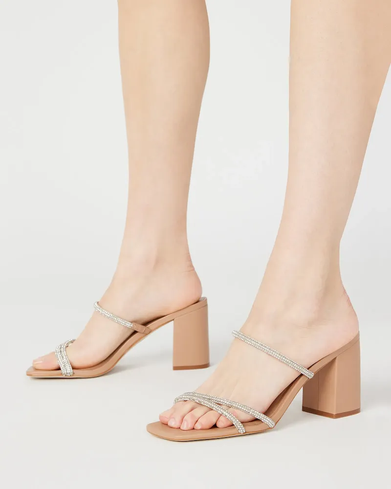 MINIMALIST + MODERN + SUNNYIt doesn’t get easier than a slip-on sandal with a block heel like AVANI Rhinestones. Plus, this slide design includes details like rhinestone-encrusted tubular straps and a square toe to elevate the look.