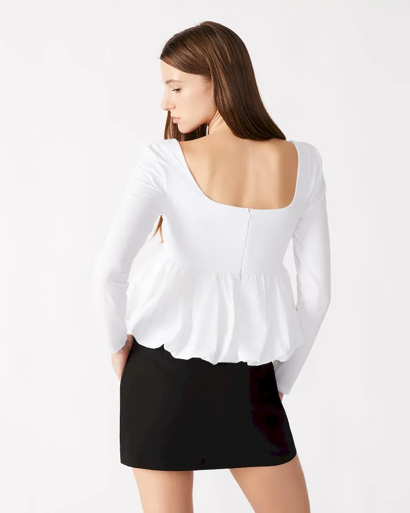 - Bubble-hem peplum top