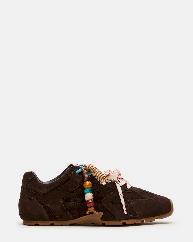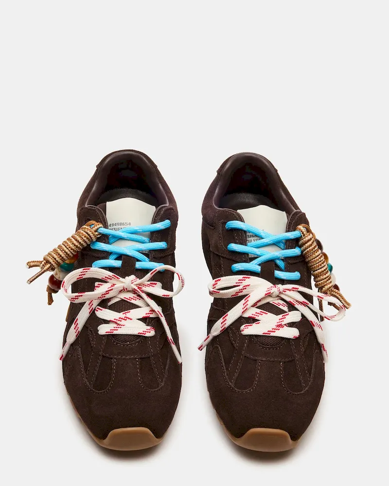 The AZIEL CHARM BROWN SUEDE is a low-top lace-up sneaker that combines style and comfort. These sneakers are perfect for everyday wear and are made with top-quality materials. With a sleek design and secure fit, they provide the perfect blend of fashion and practicality. Upgrade your shoe collection today with these versatile and timeless sneakers.
