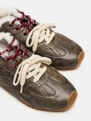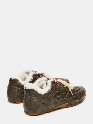The AZIEL FAUX FUR BROWN DISTRESSED is a low-top lace-up sneaker that combines style and comfort. These sneakers are perfect for everyday wear and are made with top-quality materials. With a sleek design and secure fit, they provide the perfect blend of fashion and practicality. Upgrade your shoe collection today with these versatile and timeless sneakers.