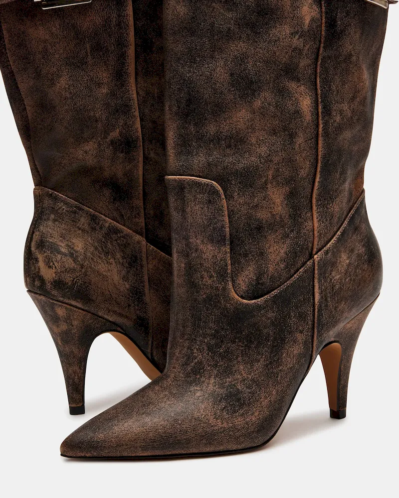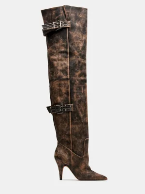 Expertly crafted, the BADDIE boot is both edgy and practical. Made with a pointed toe and buckle detail, these over-the-knee heeled boots offer a unique touch to any outfit. Elevate your style with these statement boots.