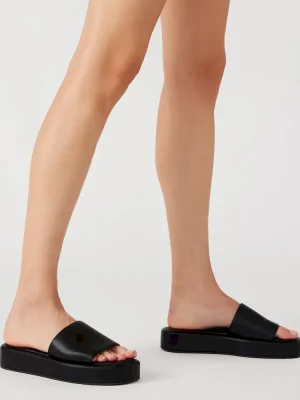 NATURAL + RELAXED + CONTEMPORARYThe BEACHY square-toe sandal secured a flatform sole with a matching wide slide strap for a super comfy textured look.