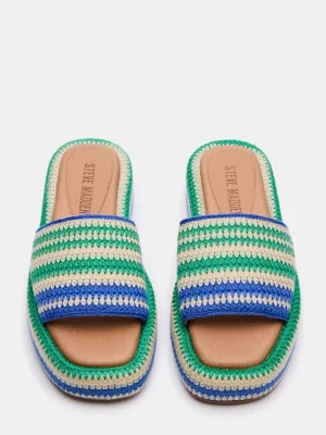 NATURAL + RELAXED + CONTEMPORARYThe BEACHY square-toe sandal secured a flatform sole with a matching wide slide strap for a super comfy textured look.