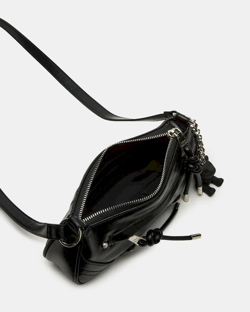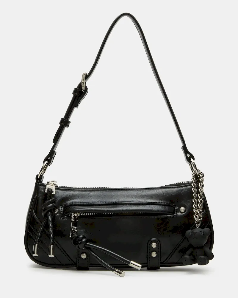 Expertly designed for versatility, the BECKA bag boasts an attached shoulder strap with hinge rings, allowing for both shoulder and crossbody wear. The front features a convenient hooded zip pocket, while the interior offers additional organization. Plus, add a touch of whimsy with the removable teddy bear bag charm.
