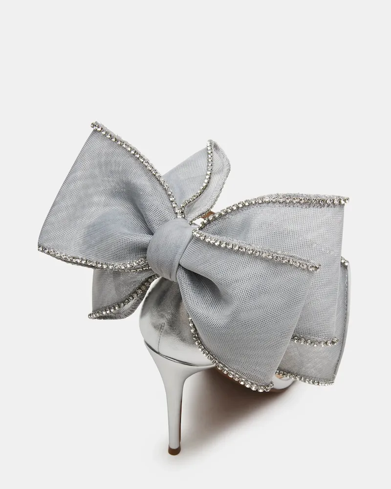 Elevate your style with BENNI. Featuring a stunning big net bow accent at the back of the heel and intricate rhinestone detailing, these stiletto heels add a touch of glamour to any outfit. Step out in confidence and be the center of attention with these stunning statement shoes.