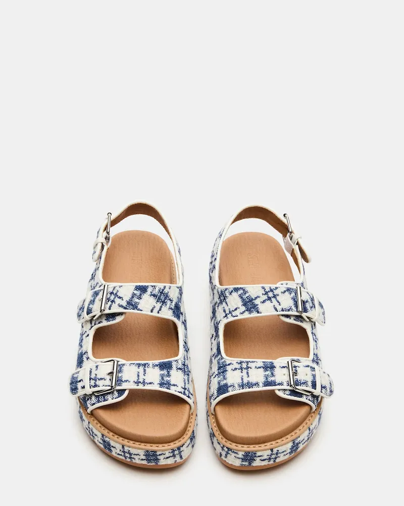 The BIGMONA2.0 BLUE/WHITE platform sandal features a flatform footbed that combines style with superior comfort. Its elevated sole provides added height and stability, making it ideal for all-day wear. Designed with a chic color scheme, this sandal is perfect for those seeking a modern, versatile look without compromising on support.