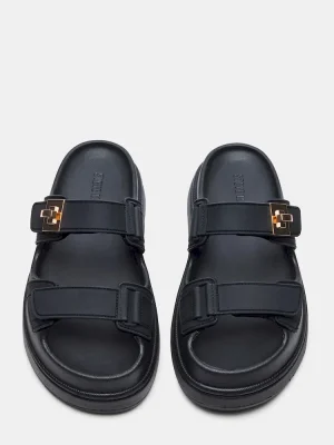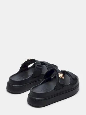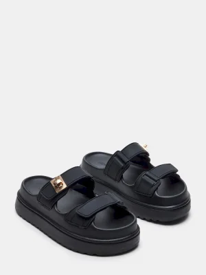 Elevate your style with the BIGSCHMONA JELLY platform slide sandal. The flatform design provides a modern twist while the turn-lock hardware accent adds a touch of sophistication. Step up your fashion game while enjoying the comfort and stability of this versatile shoe.
