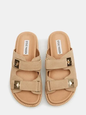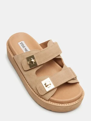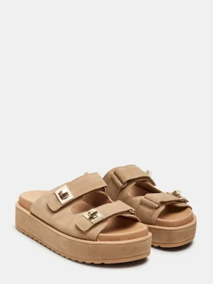 Elevate your style with the BIGSCHMONA platform slide sandal. The flatform design provides a modern twist while the turn-lock hardware accent adds a touch of sophistication. Step up your fashion game while enjoying the comfort and stability of this versatile shoe.