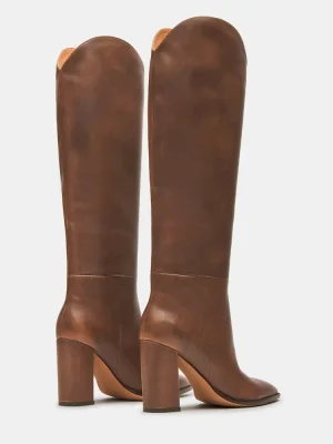A pointed toe and curved topline give the BIXBY block heel knee boot a Western edge while the sleek upper highlights the clean look