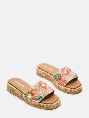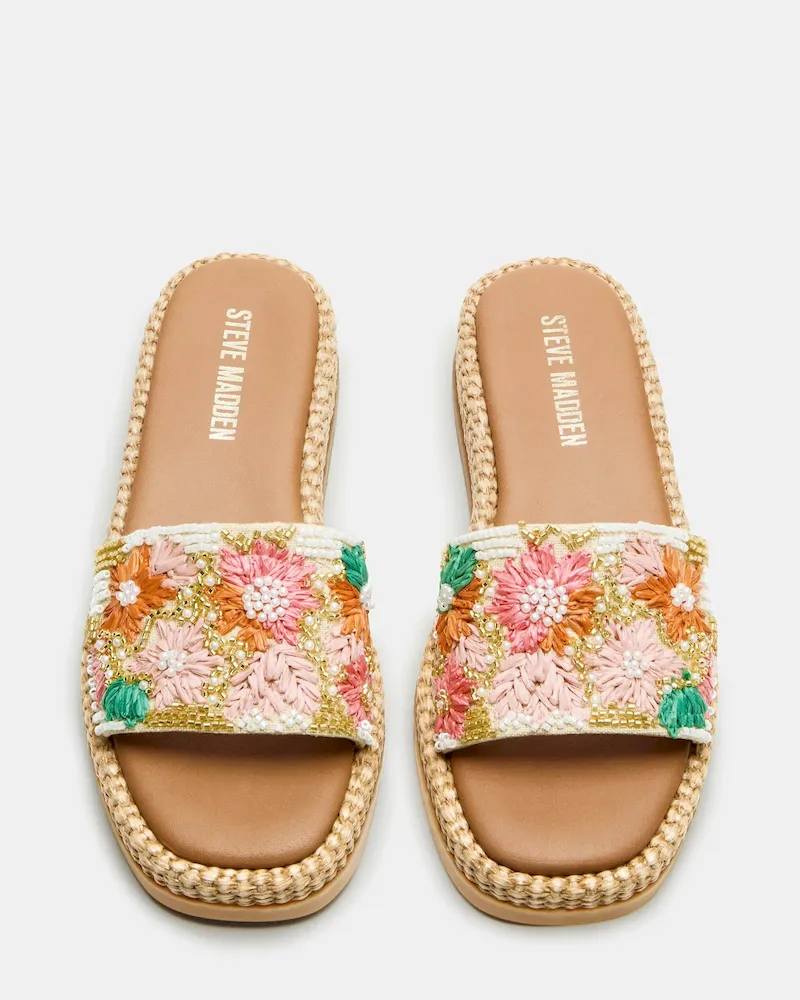 These BOARDWALK sandals offer a comfortable slide design with a raffia flatform for added style. The square toe adds a touch of sophistication. Perfect for any casual occasion, these sandals will elevate any outfit while keeping you comfortable all day.