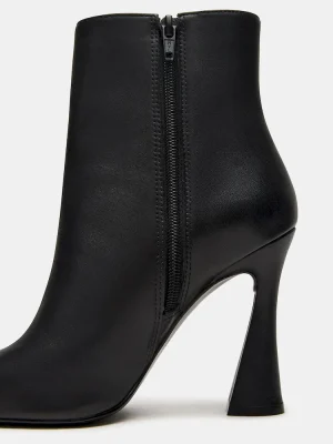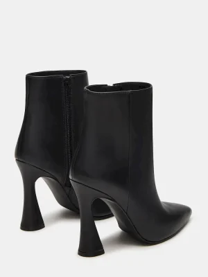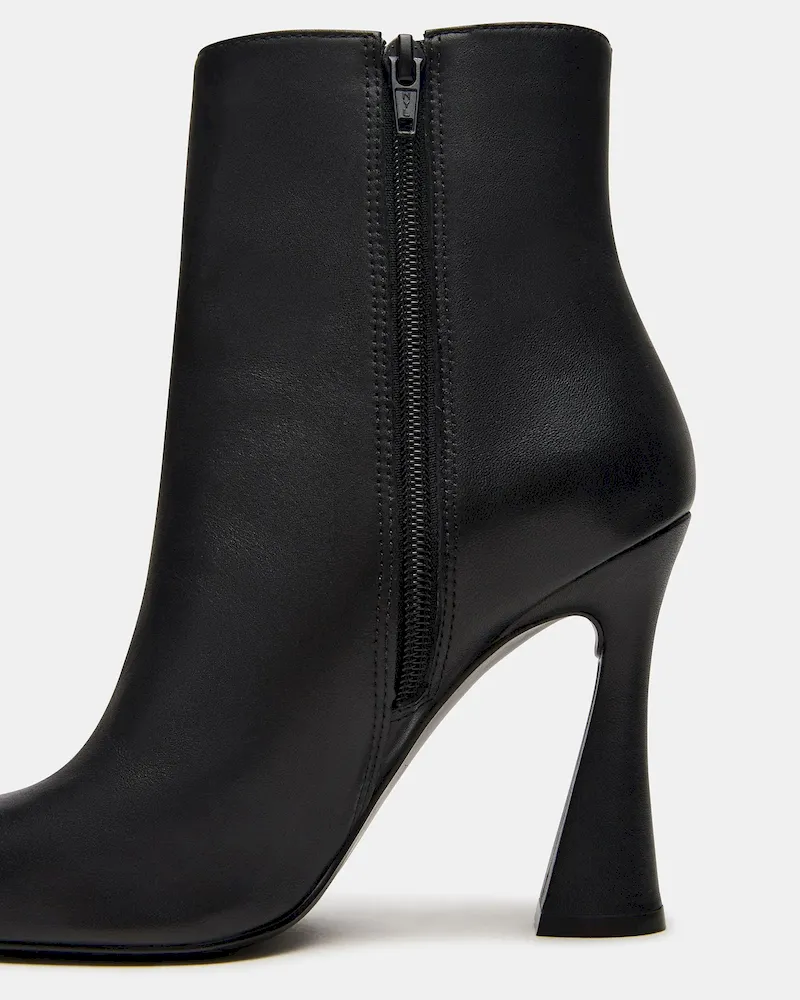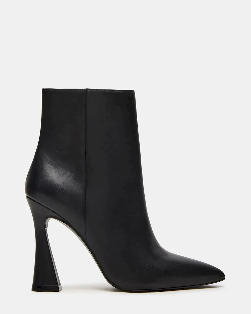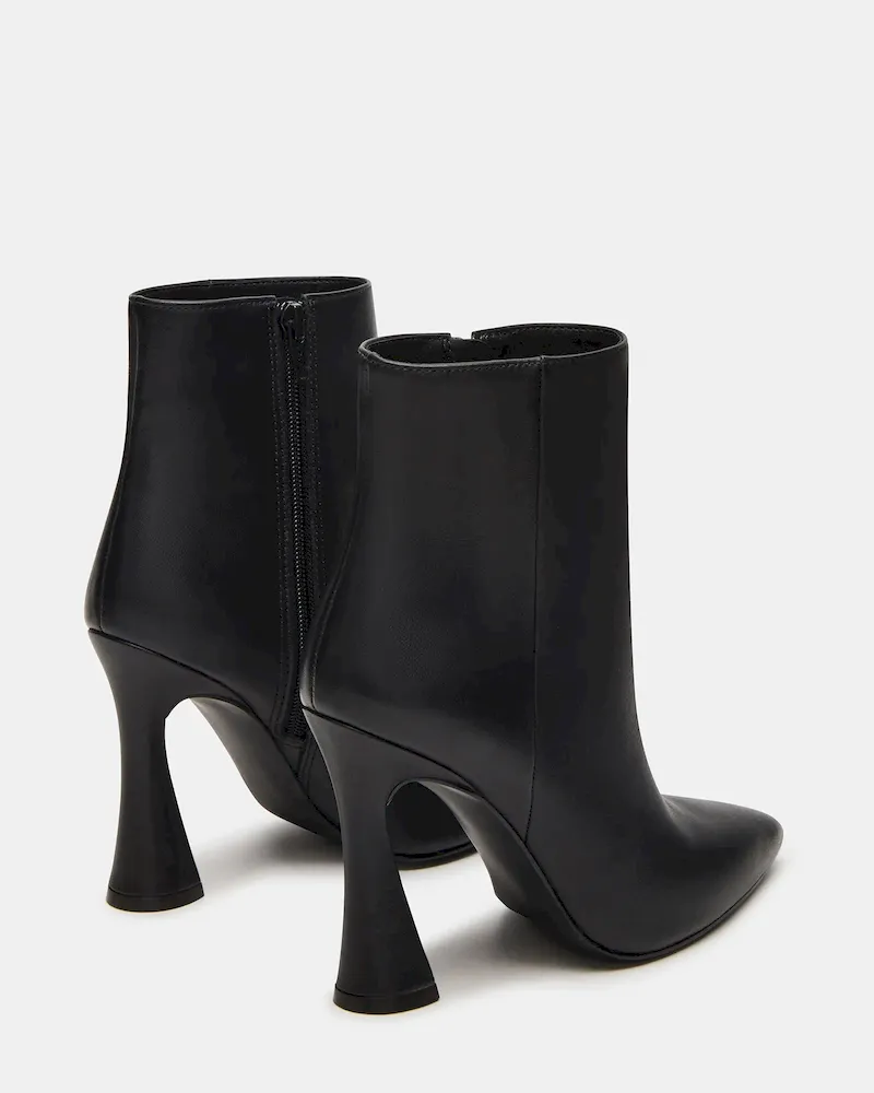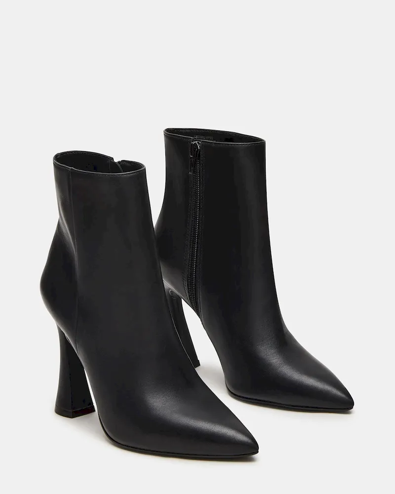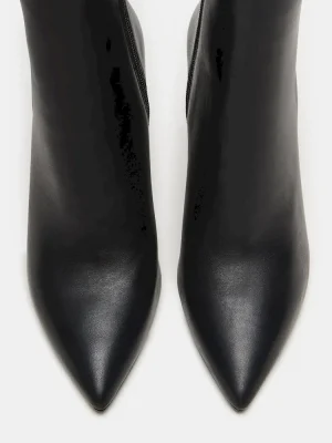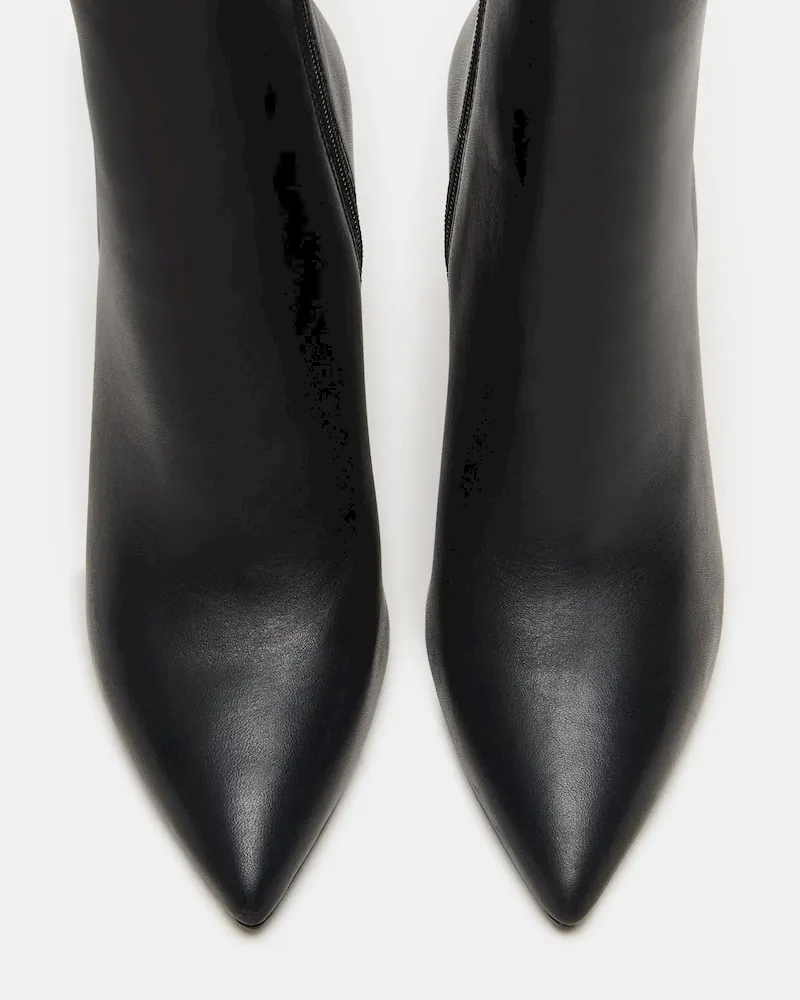 Expertly crafted and designed, the BOLERO BLACK LEATHER pointed-toe ankle boot offers both style and convenience with its inside zip feature. A versatile choice for any fashionista, this heeled bootie adds a touch of sophistication to any outfit. Perfect for transitioning from day to night.