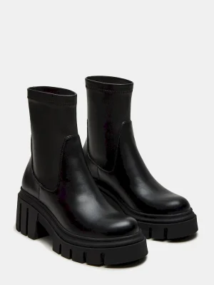 Introducing the BOOMBA ankle bootie, featuring a trendy platform and lug sole for added height and traction. The versatile design elevates any outfit, making this a must-have for any fashion-forward wardrobe. Step up your style game and stay comfortable all day long with this boot.