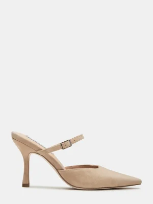 Step into sophistication with the BRECKI. This luxurious mule heel boasts a pointed toe and a mary jane inspired strap for a touch of elegance. The pump design adds a classic touch to complete your look.