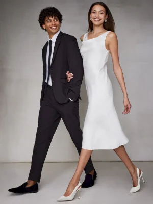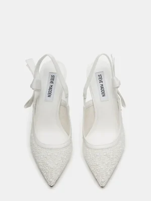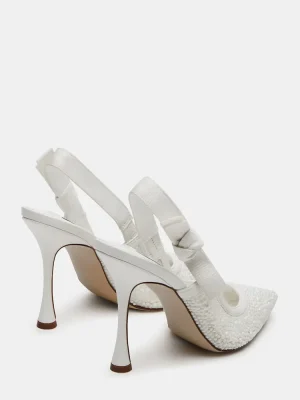 A grosgrain ribbon wraps around the slingback strap of the BRI point toe stiletto pump and finishes with a bow accenting the side of the shoe.
