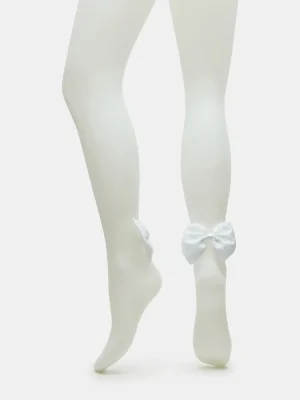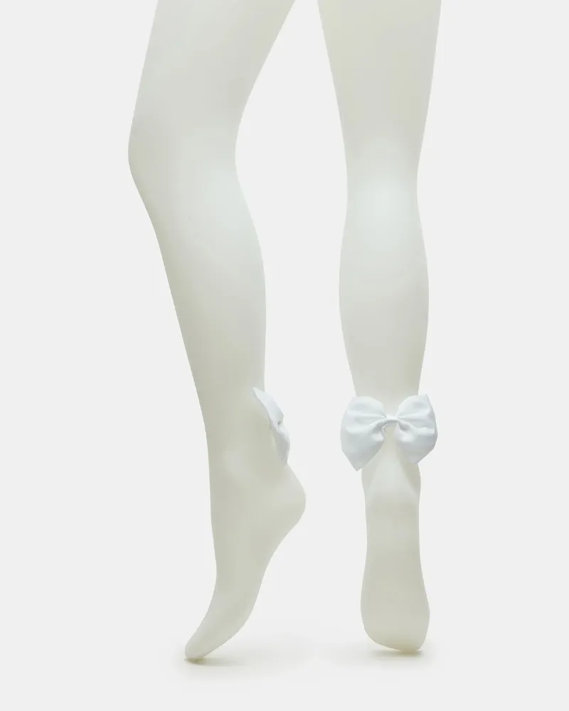 Elevate your bridal ensemble with our BRIDAL BOW tights. Made with sheer fabric, these footed tights add a touch of elegance to any wedding look. The delicate bow detail adds a romantic touch, perfect for any bride. Elevate your outfit while feeling comfortable and stylish.