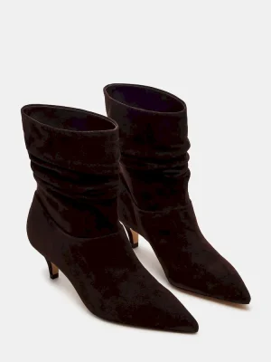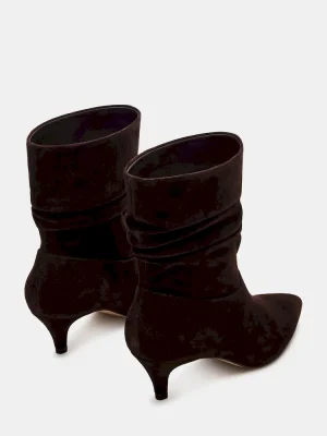 Add some sass to your step with the BRINWOOD boots. These pointed toe booties feature a trendy kitten heel and a unique scrunched shaft, making them the perfect combination of stylish and playful.