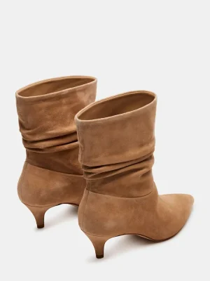 Add some sass to your step with the BRINWOOD boots. These pointed toe booties feature a trendy kitten heel and a unique scrunched shaft, making them the perfect combination of stylish and playful.