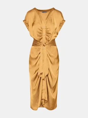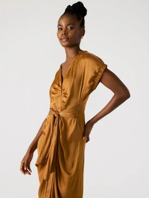 The BRUNO dress is a versatile and stylish addition to any wardrobe. This short-sleeved midi dress features a convenient button-up closure and a flattering tie-front waistline, making it the perfect choice for any occasion. Its elegant design and comfortable fit are sure to make you stand out in any crowd.