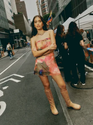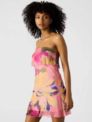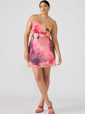 Expertly designed for the modern fashionista, the BRYAR dress is a stunning floral print mini dress that features a delicate mesh overlay. Its strapless design and flowy silhouette add a touch of elegance to any outfit. Perfect for a summer day out or a special occasion, this dress combines style and comfort effortlessly.