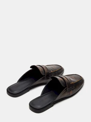 The CALEB is a stylish mule flat that features a slip-on design for added comfort. Its distressed design adds a touch of character to any outfit. Expertly crafted for lasting wear.