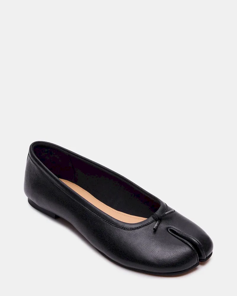 The CALICO BLACK LEATHER tabi split toe ballet flat combines traditional design with modern craftsmanship. Crafted from premium materials, this flat features a distinctive split toe for enhanced flexibility and a unique silhouette. Its sleek profile and comfortable fit make it an expert choice for those seeking both style and innovative footwear technology. Ideal for everyday wear or refined occasions, it offers a subtle yet striking statement.